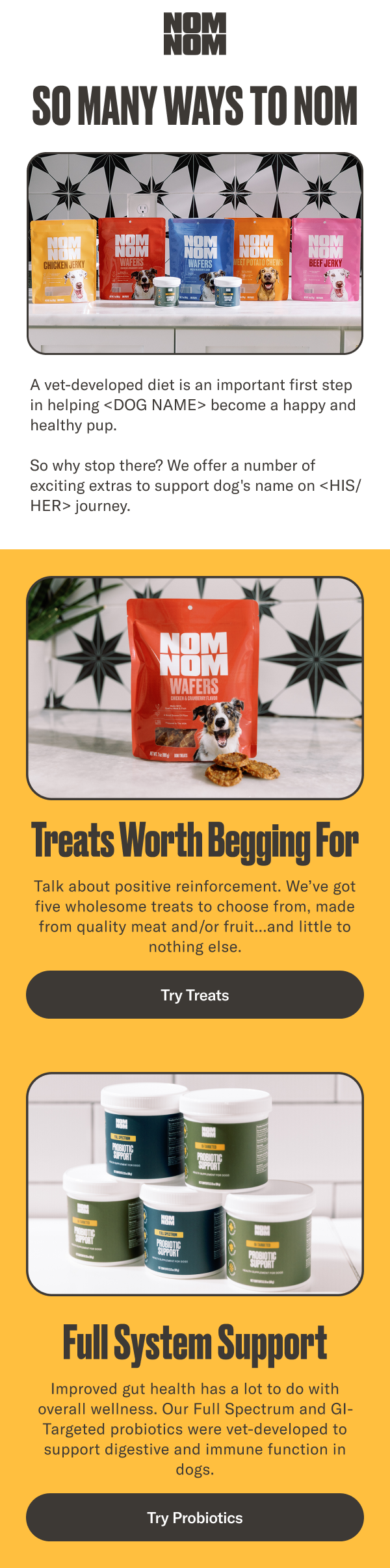 I developed Nom Nom’s very first digital guide to educate veterinary professionals on our line of products, their nutritional specifications and their benefits, to raise awareness and increase the likelihood of recommending Nom Nom to their patients. I also created a similar template with high-level messaging for the fresh food debut of our parent company, Royal Canin.